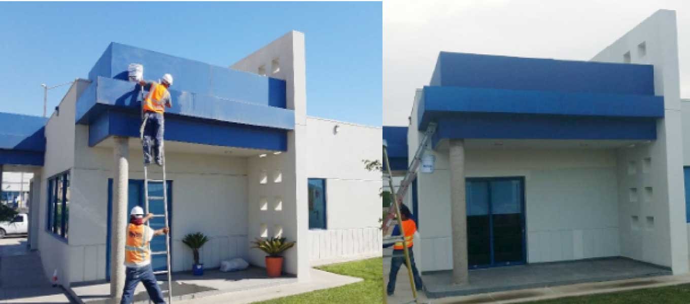 Aplicación de pintura en muros de interior y exterior de oficinas.